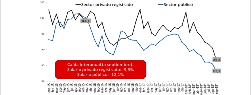 Los compañerxs de CIFRA (Centro de Investigación y Formación de la República Argentina) nos hicieron llegar un resumen de las últimas estadísticas publicadas sobre empleo registrado, que corresponden al mes de septiembre y que grafica una caída pronunciadas en los salarios